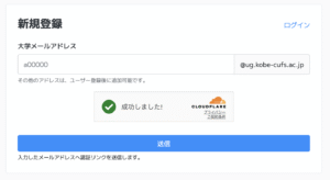 神戸市外国語大学の学生メールアドレスを入力してください。学籍番号部分のみで結構です。
