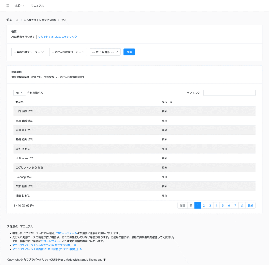 あなたの所属しているコースを受け入れ対象とするゼミを絞り込む事が出来ます。
