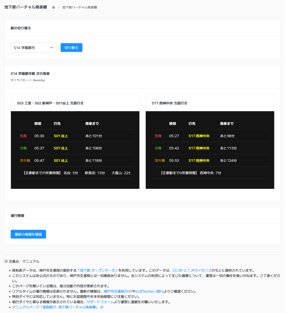 地下鉄西神・山手線の電車発車時刻を確認することが出来る機能を追加いたしました。